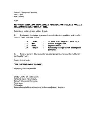 Doc Surat Permohonan Lawatan Ke Kem Iskandar Isma Suep Academia Edu